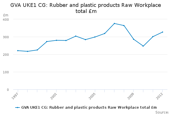 Download this time seriesGVA UKE1 CG: Rubber and plastic products Raw Workplace total £m