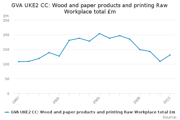 Download this time seriesGVA UKE2 CC: Wood and paper products and printing Raw Workplace total £m