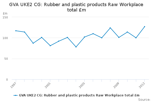 Download this time seriesGVA UKE2 CG: Rubber and plastic products Raw Workplace total £m