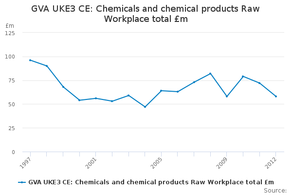 Download this time seriesGVA UKE3 CE: Chemicals and chemical products Raw Workplace total £m