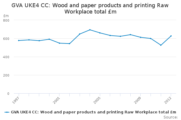 Download this time seriesGVA UKE4 CC: Wood and paper products and printing Raw Workplace total £m