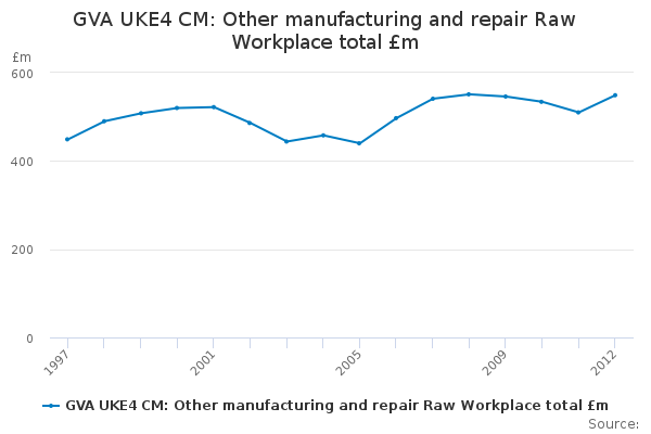 Download this time seriesGVA UKE4 CM: Other manufacturing and repair Raw Workplace total £m