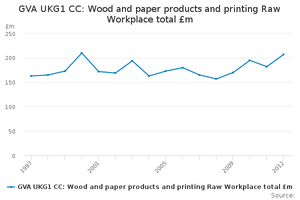 Download this time seriesGVA UKG1 CC: Wood and paper products and printing Raw Workplace total £m
