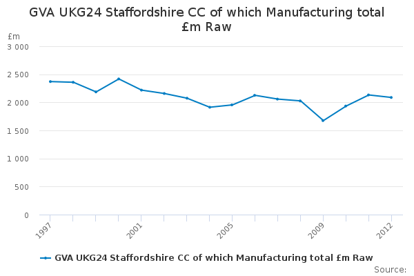 Download this time seriesGVA UKG24 Staffordshire CC of which Manufacturing total £m Raw