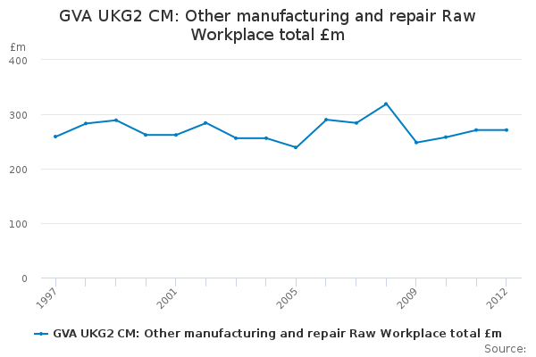 Download this time seriesGVA UKG2 CM: Other manufacturing and repair Raw Workplace total £m