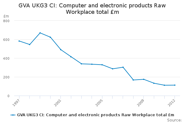 Download this time seriesGVA UKG3 CI: Computer and electronic products Raw Workplace total £m