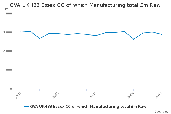 Download this time seriesGVA UKH33 Essex CC of which Manufacturing total £m Raw