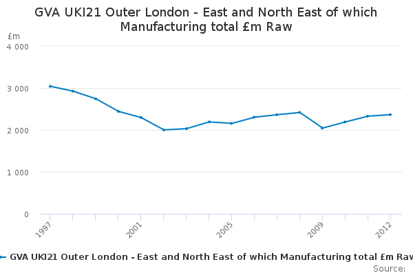Download this time seriesGVA UKI21 Outer London - East and North East of which Manufacturing total £m Raw