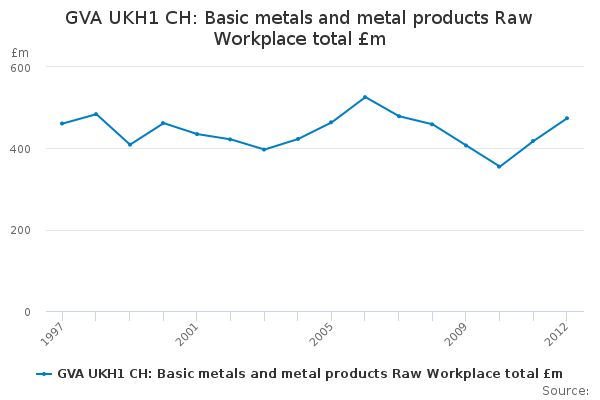 Download this time seriesGVA UKH1 CH: Basic metals and metal products Raw Workplace total £m