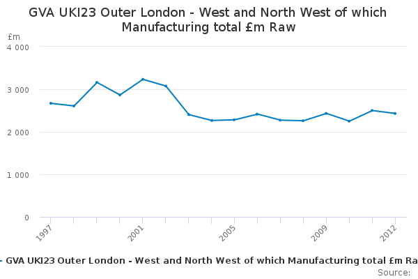Download this time seriesGVA UKI23 Outer London - West and North West of which Manufacturing total £m Raw