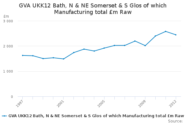 Download this time seriesGVA UKK12 Bath, N & NE Somerset & S Glos of which Manufacturing total £m Raw