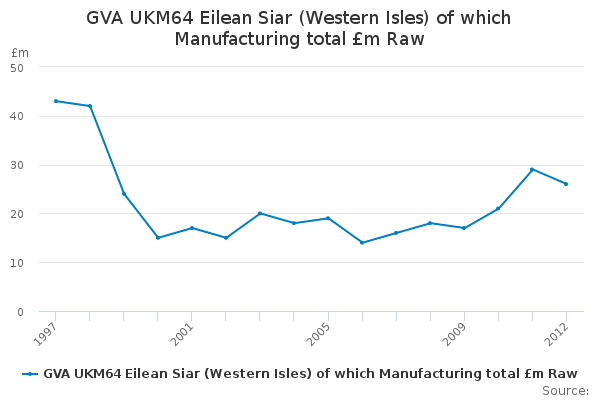 Download this time seriesGVA UKM64 Eilean Siar (Western Isles) of which Manufacturing total £m Raw