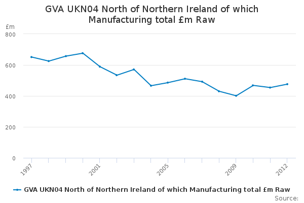 Download this time seriesGVA UKN04 North of Northern Ireland of which Manufacturing total £m Raw