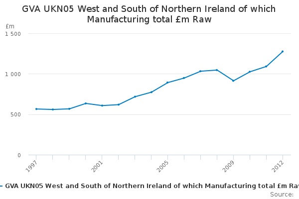 Download this time seriesGVA UKN05 West and South of Northern Ireland of which Manufacturing total £m Raw