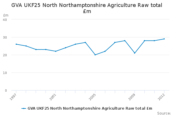 Download this time seriesGVA UKF25 North Northamptonshire Agriculture Raw total £m