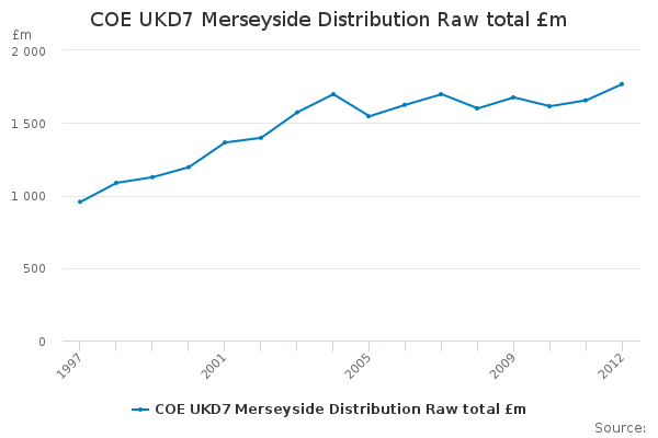 Download this time seriesCOE UKD7 Merseyside Distribution Raw total £m