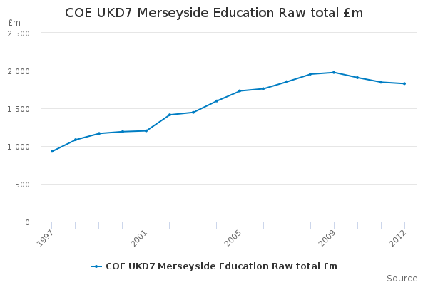 Download this time seriesCOE UKD7 Merseyside Education Raw total £m