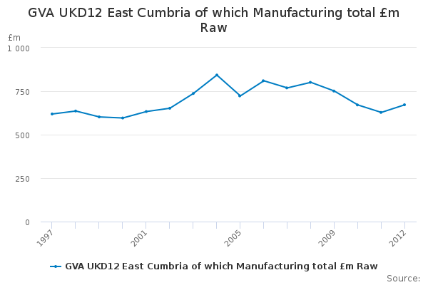Download this time seriesGVA UKD12 East Cumbria of which Manufacturing total £m Raw