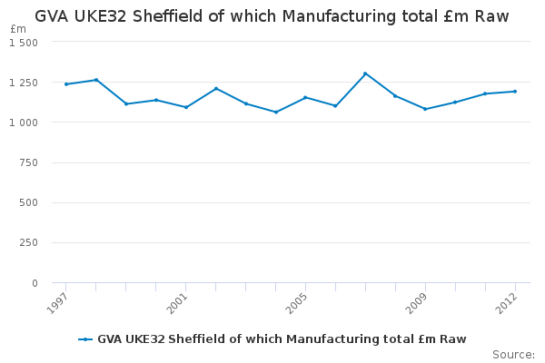 Download this time seriesGVA UKE32 Sheffield of which Manufacturing total £m Raw