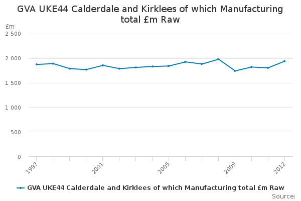 Download this time seriesGVA UKE44 Calderdale and Kirklees of which Manufacturing total £m Raw
