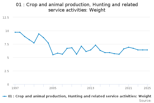Download this time series01 : Crop and animal production, Hunting and related service activities: Weight