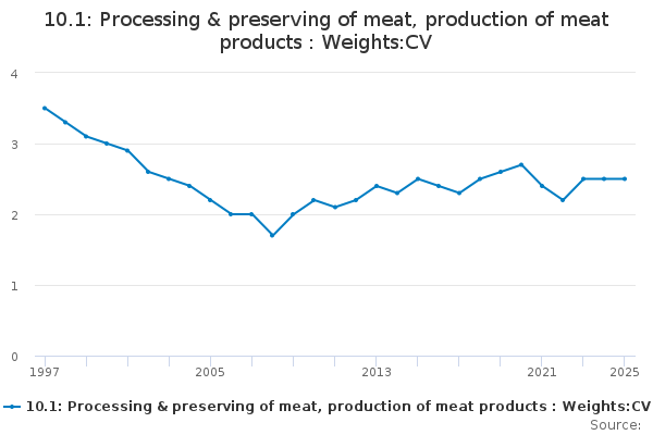 Download this time series10.1: Processing & preserving of meat, production of meat products : Weights:CV