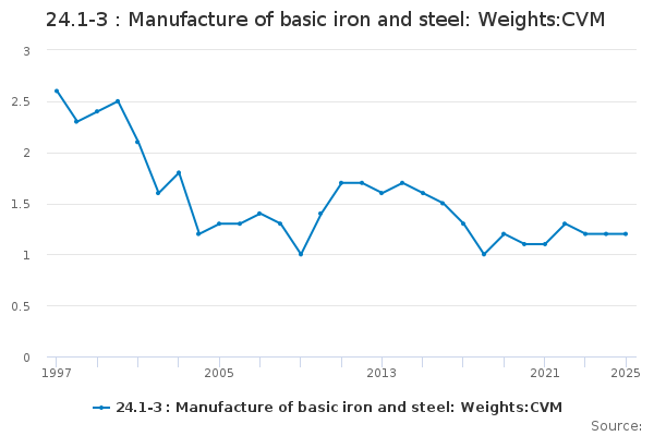 Download this time series24.1-3 : Manufacture of basic iron and steel: Weights:CVM