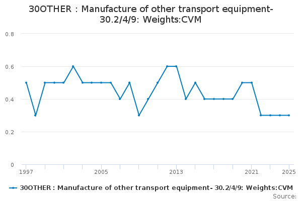 Download this time series30OTHER : Manufacture of other transport equipment- 30.2/4/9: Weights:CVM