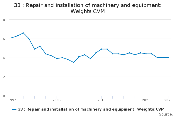 Download this time series33 : Repair and installation of machinery and equipment: Weights:CVM