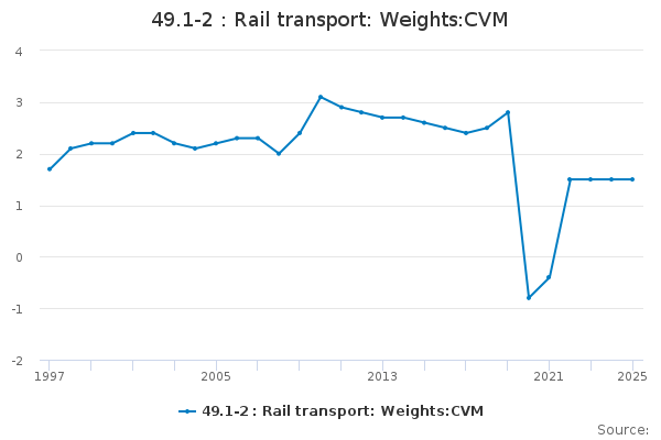 Download this time series49.1-2 : Rail transport: Weights:CVM