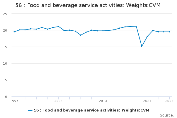 Download this time series56 : Food and beverage service activities: Weights:CVM