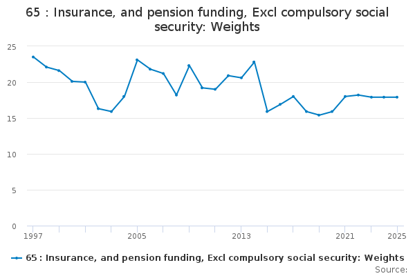 Download this time series65 : Insurance, and pension funding, Excl compulsory social security: Weights