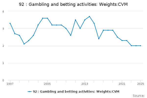 Download this time series92 : Gambling and betting activities: Weights:CVM