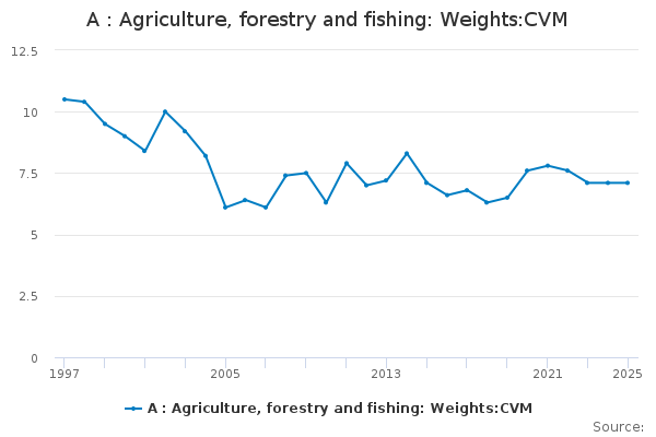 Download this time seriesA : Agriculture, forestry and fishing: Weights:CVM