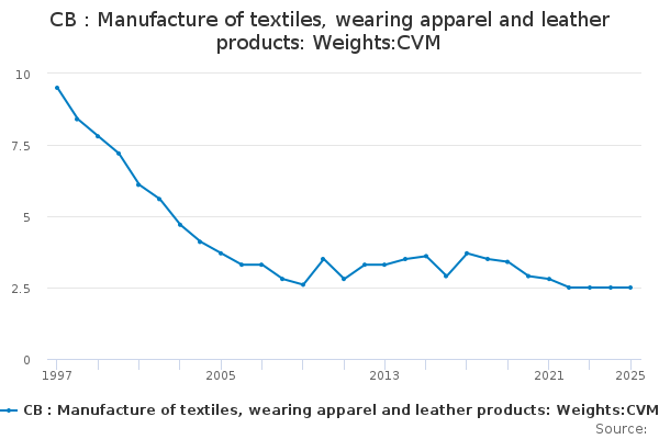 Download this time seriesCB : Manufacture of textiles, wearing apparel and leather products: Weights:CVM