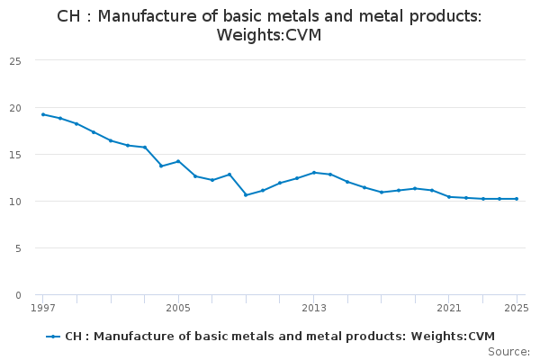 Download this time seriesCH : Manufacture of basic metals and metal products: Weights:CVM