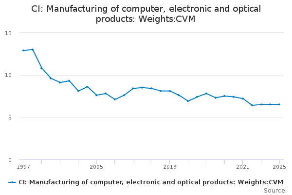 Download this time seriesCI: Manufacturing of computer, electronic and optical products: Weights:CVM
