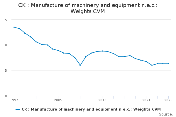 Download this time seriesCK : Manufacture of machinery and equipment n.e.c.: Weights:CVM