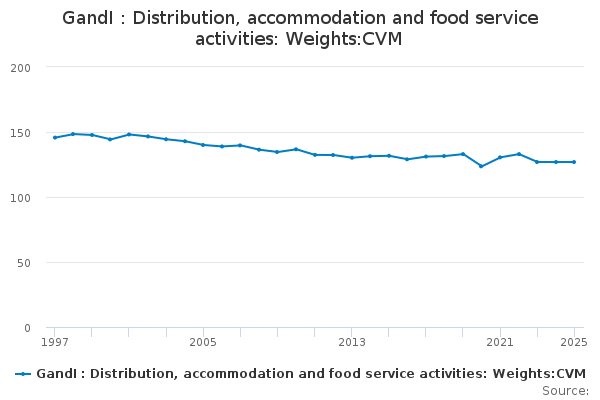 Download this time seriesGandI : Distribution, accommodation and food service activities: Weights:CVM