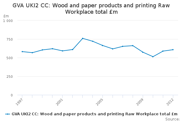 Download this time seriesGVA UKI2 CC: Wood and paper products and printing Raw Workplace total £m