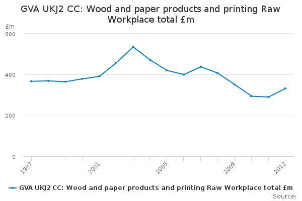 Download this time seriesGVA UKJ2 CC: Wood and paper products and printing Raw Workplace total £m