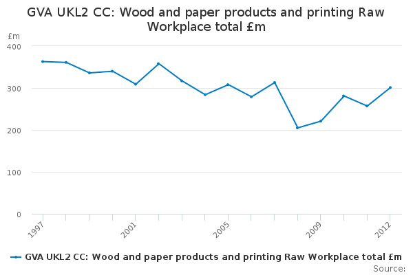 Download this time seriesGVA UKL2 CC: Wood and paper products and printing Raw Workplace total £m