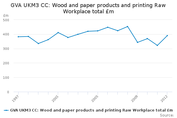Download this time seriesGVA UKM3 CC: Wood and paper products and printing Raw Workplace total £m