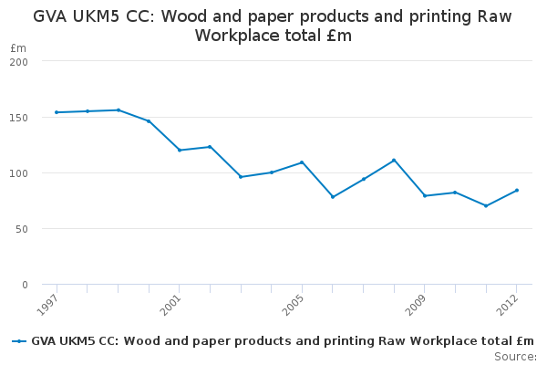 Download this time seriesGVA UKM5 CC: Wood and paper products and printing Raw Workplace total £m