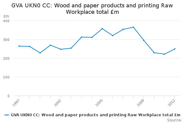 Download this time seriesGVA UKN0 CC: Wood and paper products and printing Raw Workplace total £m