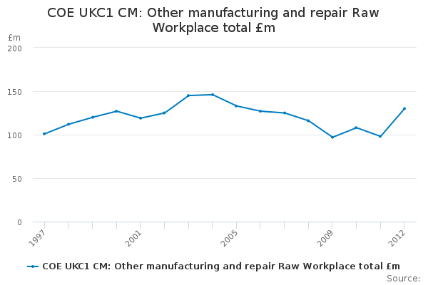 Download this time seriesCOE UKC1 CM: Other manufacturing and repair Raw Workplace total £m