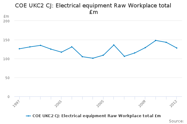 Download this time seriesCOE UKC2 CJ: Electrical equipment Raw Workplace total £m