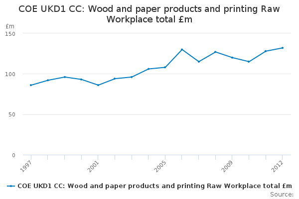 Download this time seriesCOE UKD1 CC: Wood and paper products and printing Raw Workplace total £m
