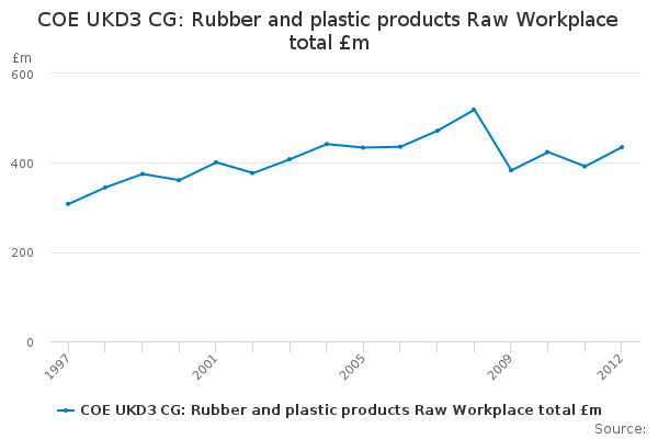 Download this time seriesCOE UKD3 CG: Rubber and plastic products Raw Workplace total £m