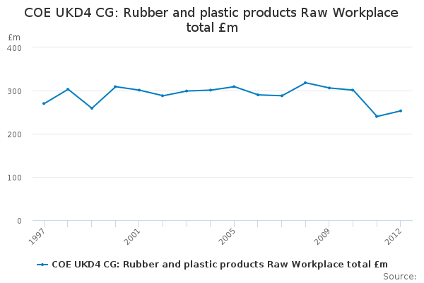 Download this time seriesCOE UKD4 CG: Rubber and plastic products Raw Workplace total £m